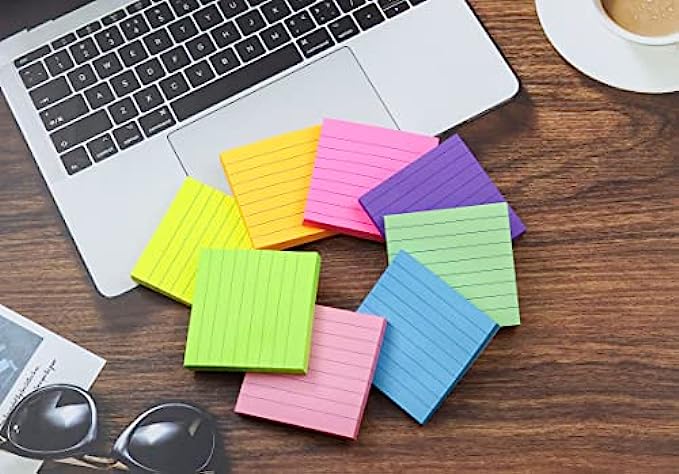 (8 Pack) Lined Sticky Notes Post, 8 Colors Self Sticky Notes Pad Its 3X3 in, Bright Post Stickies Colorful Big Square Sticky Notes for Office, Home, School, Meeting,82 Sheets/pad