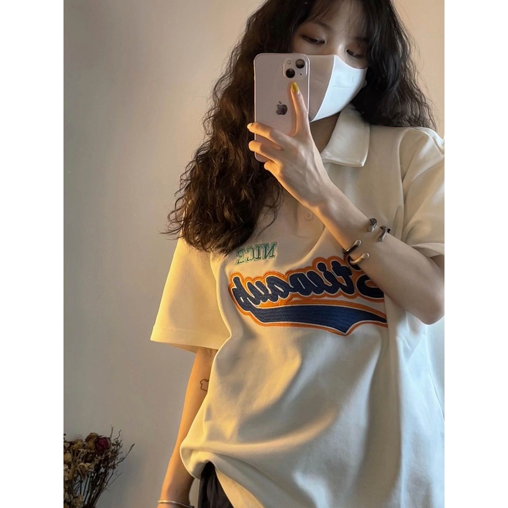 【羊城故事】純棉 刺繡 t恤 短袖 原宿風上衣 短袖上衣 字母 oversize 打底衫 ins 風衣服 女生衣服 上衣