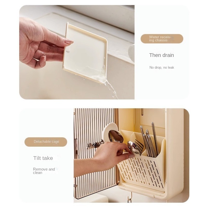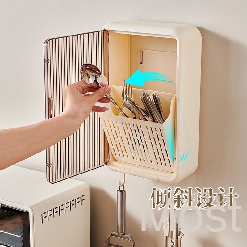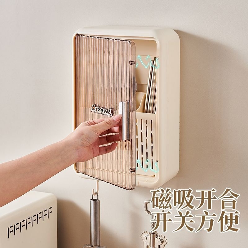 【Free Shipping】Chopstick Storage Rack/storage Rack/wall Mounted Multifunctional Chopstick Storage Box/covered Chopstick Bucket/kitchen Storage