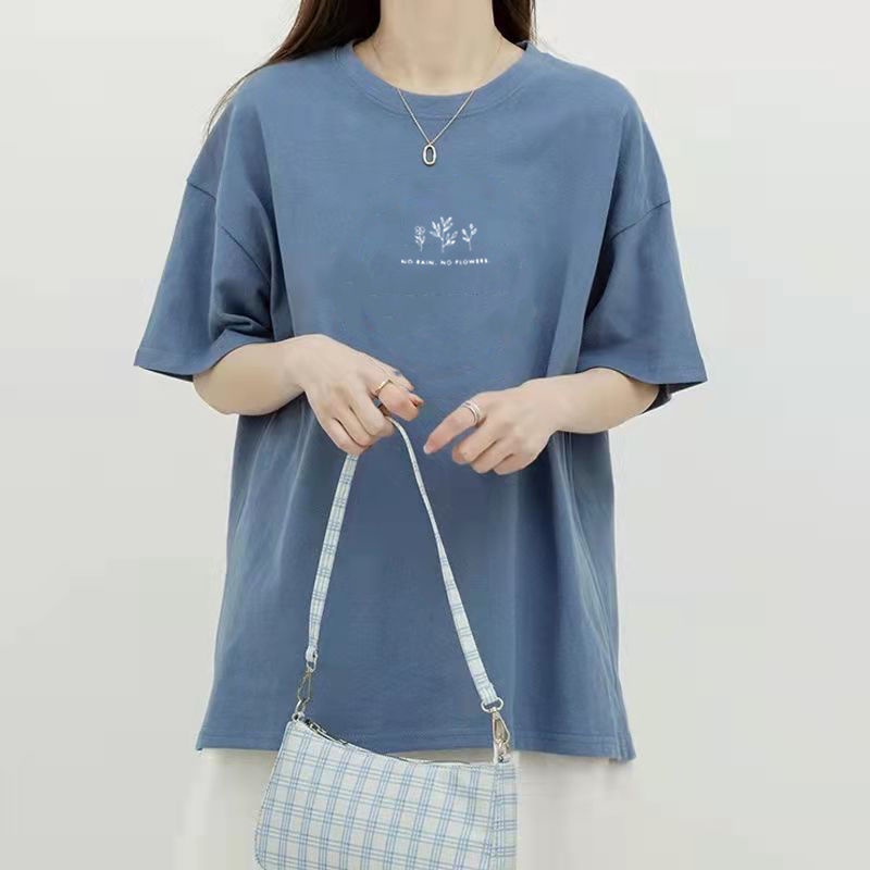 【TBB】韓版圓領短袖t恤女 夏季短袖上衣 休閒T恤 寬鬆植物印花含棉白色ins超火短袖上衣 學生半袖上衣 多色可選擇