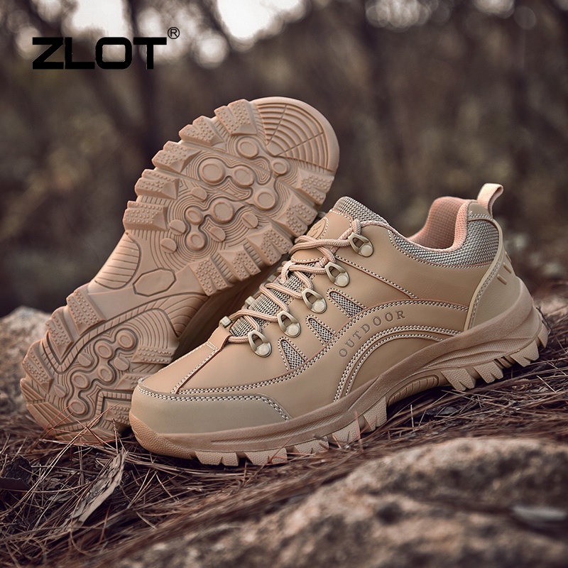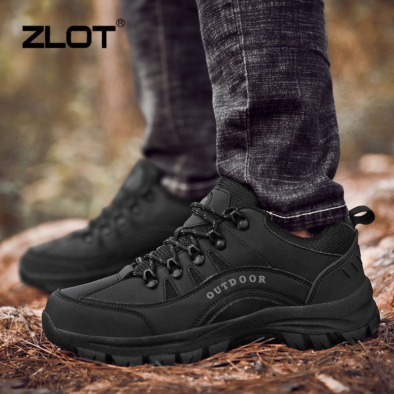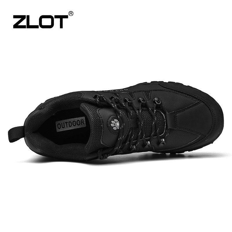 【ZLOT】 Plus Size 38-49 Outdoor Hiking Shoes Brand Waterproof Leather Sports Shoes Anti Slip Black Rubber Shoes For Men