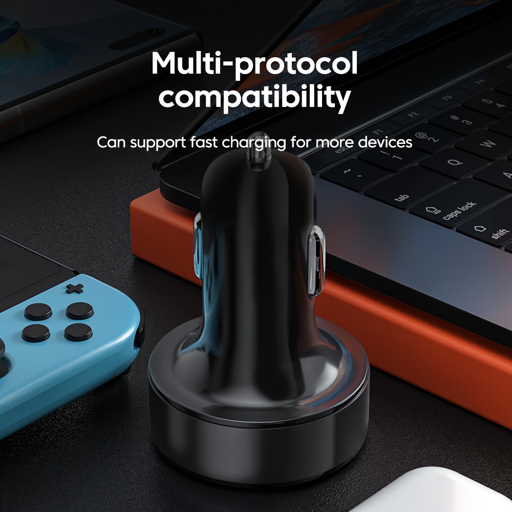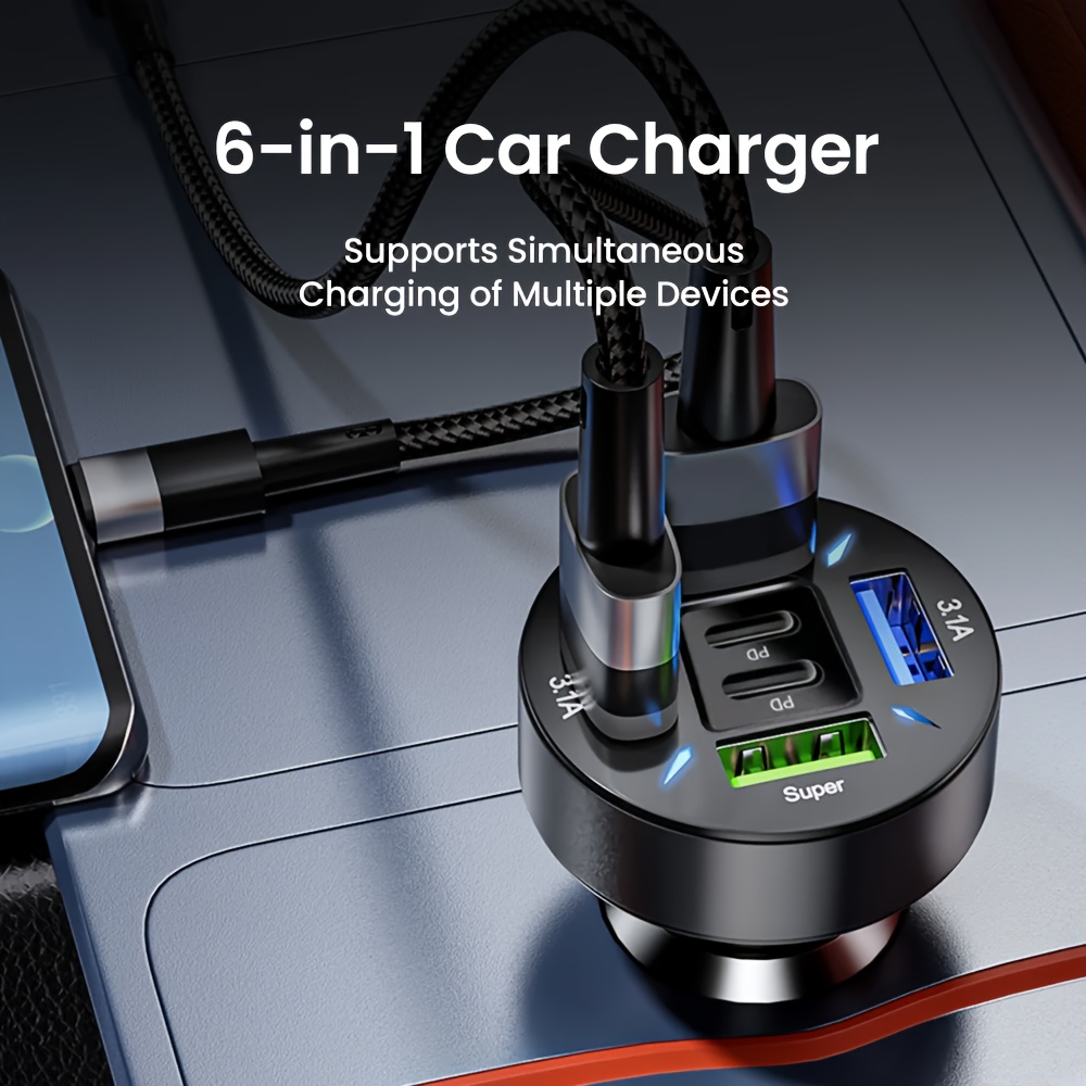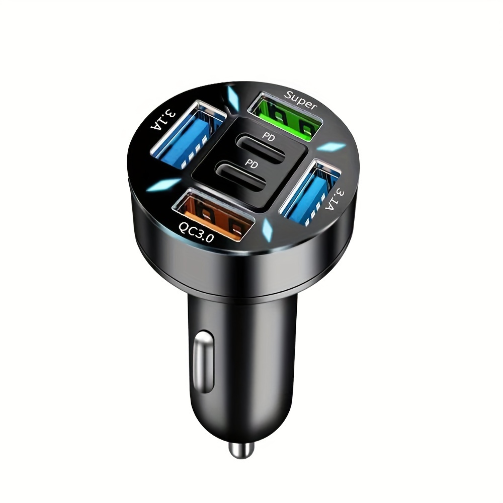 2024 new car charger six-port 66W super fast charge 4 USB ports and 2 PD ports 12-24V cars
