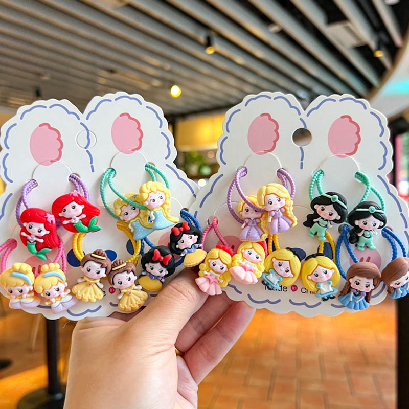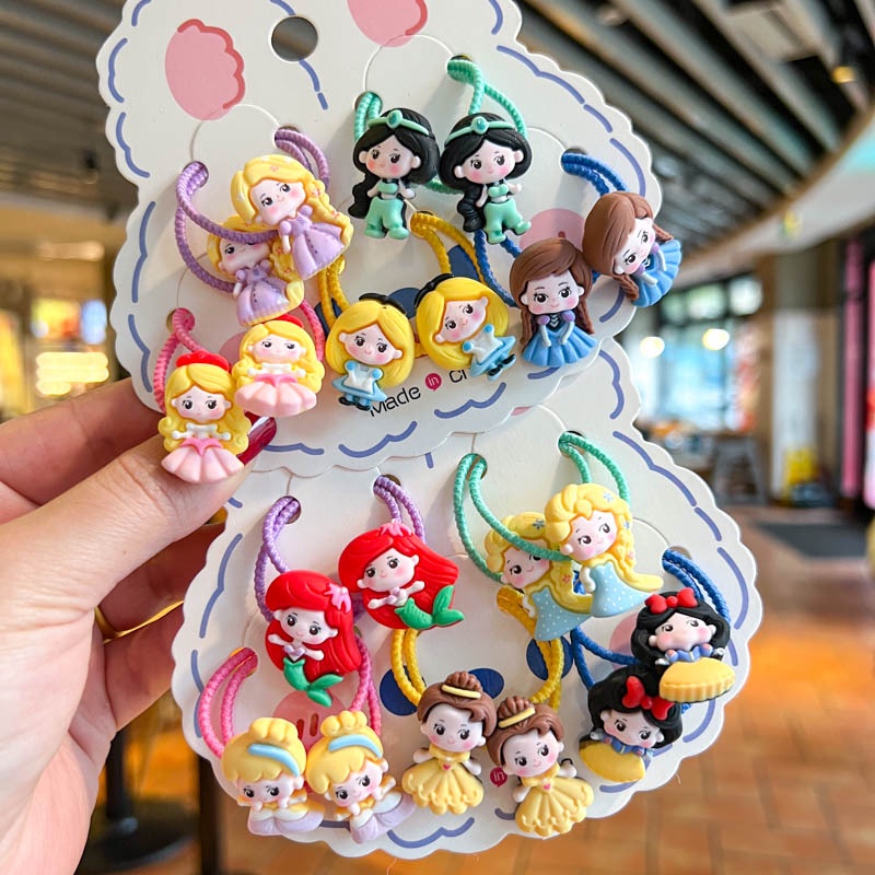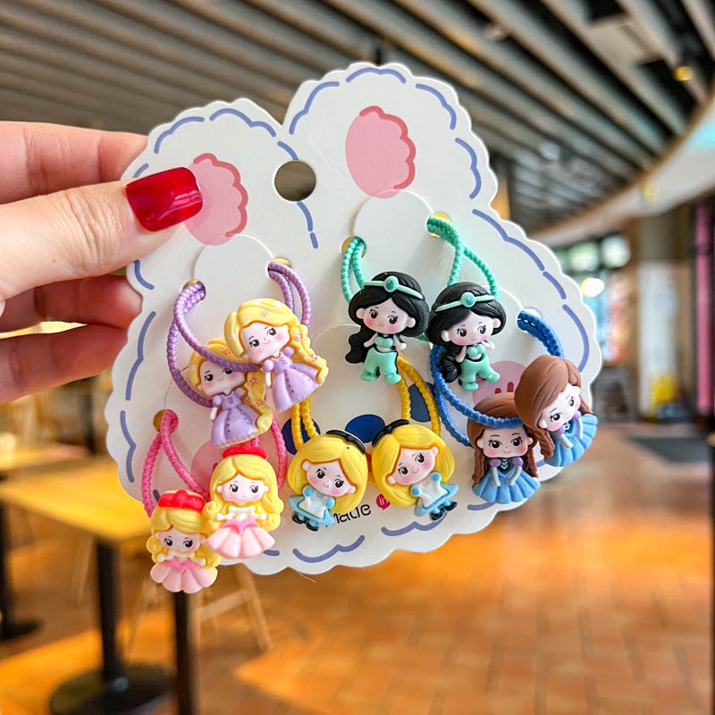 ((10 Pcs) Korean Version New Style Children's Color Hair Tie Girls Sweet Cute Cartoon Q Version Princess Hair Tie Little Girl Baby Tie Hair Rubber Band Hair Tie Korean Hair Accessories