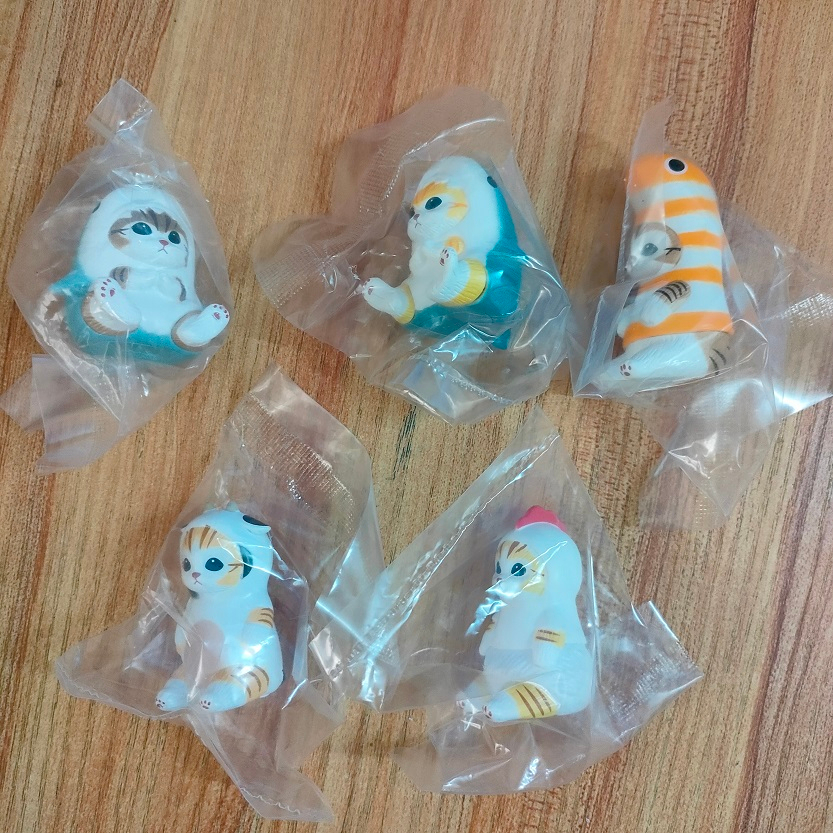 5Pcs/Set Mofusand Kawaii Tempura Fried Shrimp Shark Cat Action Figure Toy PVC Hamburg Cat Model Doll Figurines Home Decoration Fans Children Gifts