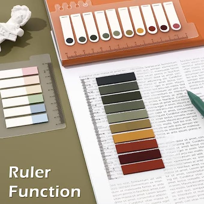 • [Index Tabs with Ruler]: Notes flags with ruler , the ruler is soft and not easy to break. The ruler can be clamped on the notebook, and you can use it for measurement activities as needed.