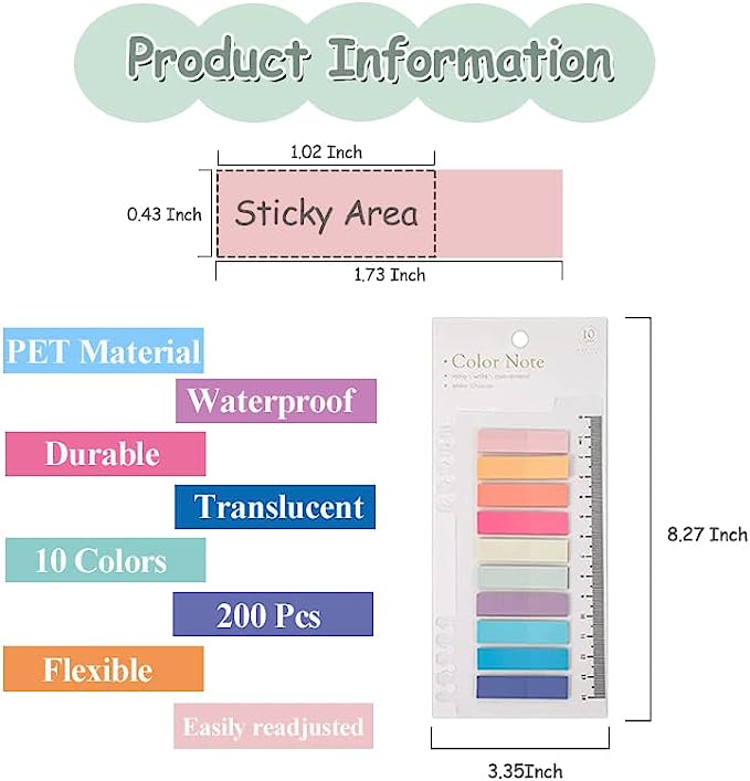 • ✍[Sticky Index Tabs] 40 different colors of sticky index tabs,which are aesthetically pleasing.Sticky enough to stay in place but not too sticky that it will pick up the ink or damage the paper,easily readjusted if needed.
