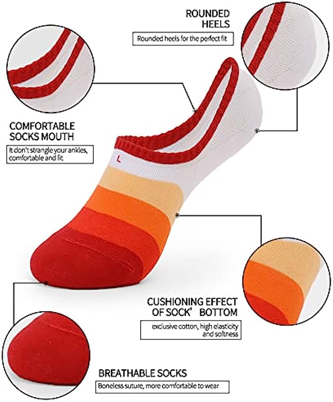 • BREATHABLE SOCKS.Breathable mesh design,no show socks for women.Perfect permeability and moisture wicking.Keep your feet dry cool all day while running or hiking.Mesh ventilation releases heat to keep at a comfortable temperature.
