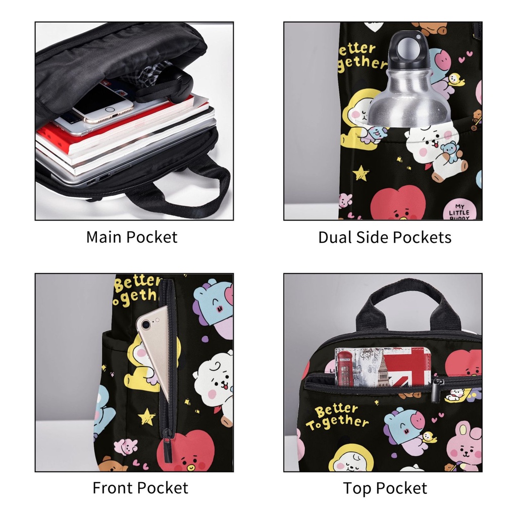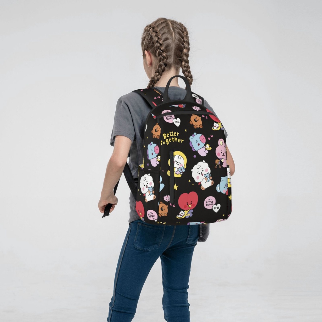 BT21 14.7 Inches Backpacks Cute Book Bag for Students Commuting, Funny Backpack Durable Travel Bags with Multiple Zipper Pockets Design