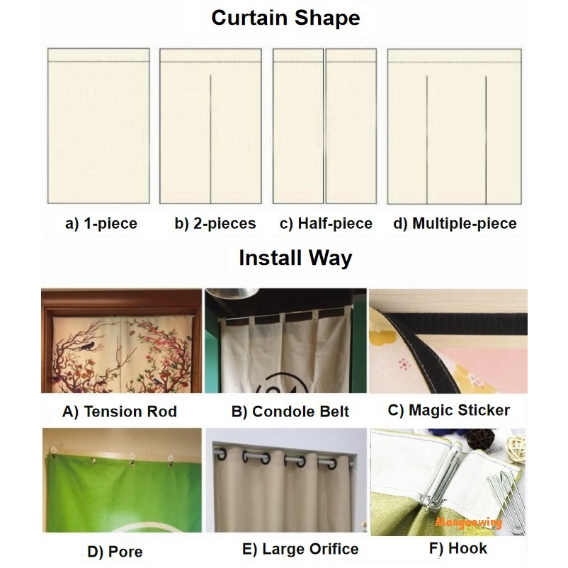 Customize Door Curtain for Kitchen Store Opening Decoration Cotton Thicken Long Doorway Partition Curtain Velcro Tape Rail Curtain with Rod