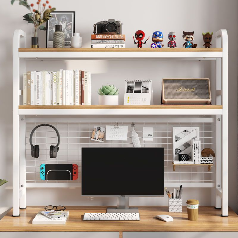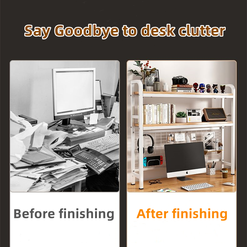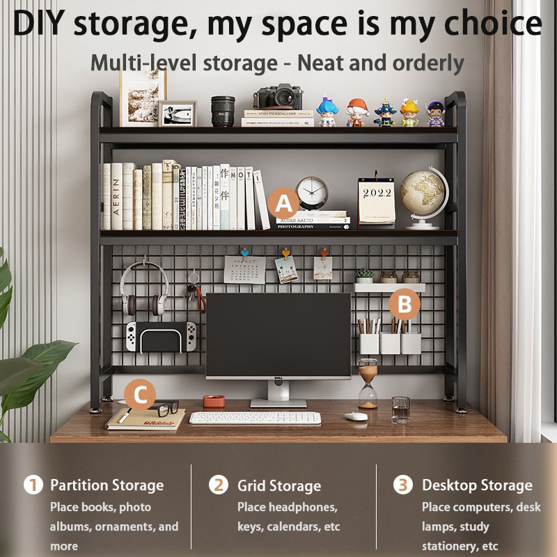 Desk shelf Wire Mesh Grid Double Layer Wooden desktop shelf Bookshelf simple student dormitory office desk storage rack