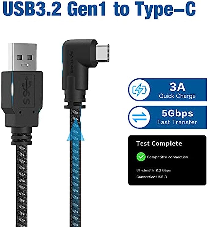 • [High Speed Data Transfer] - The USB 3.2 Gen 1 A to C link cable supports 5 Gbps data transfer, which means users won’t struggle with any lag when playing tethered VR titles, bringing you a more smooth gaming experience. Also, it supports 5V charging, letting the headset be charged while playing.
