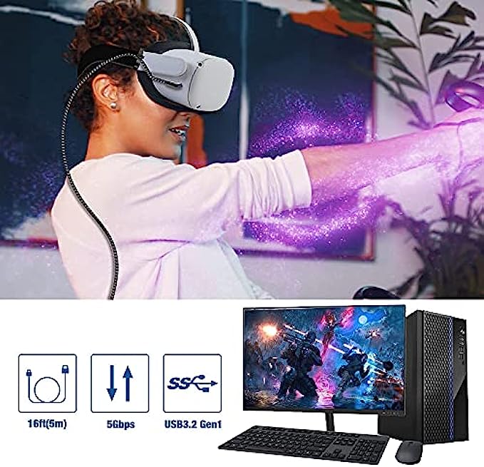 • [Upgrade 16ft Length] - This 16ft link cable for oculus is long enough to allow you to move freely and reach across an entire play space, making it convenient to play room-scale games without worrying about pulling on the cable. Less limit and more fun.