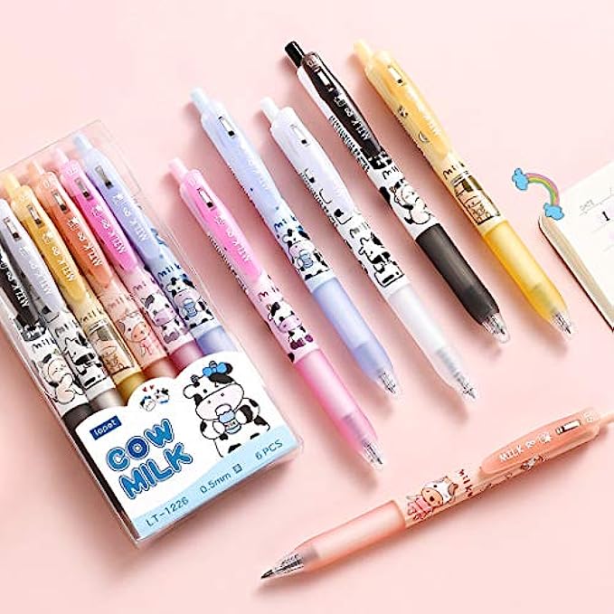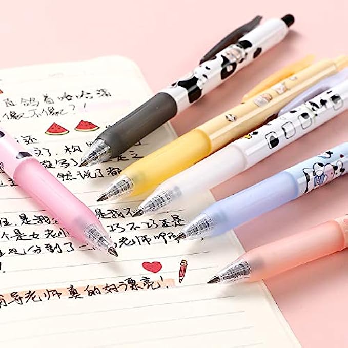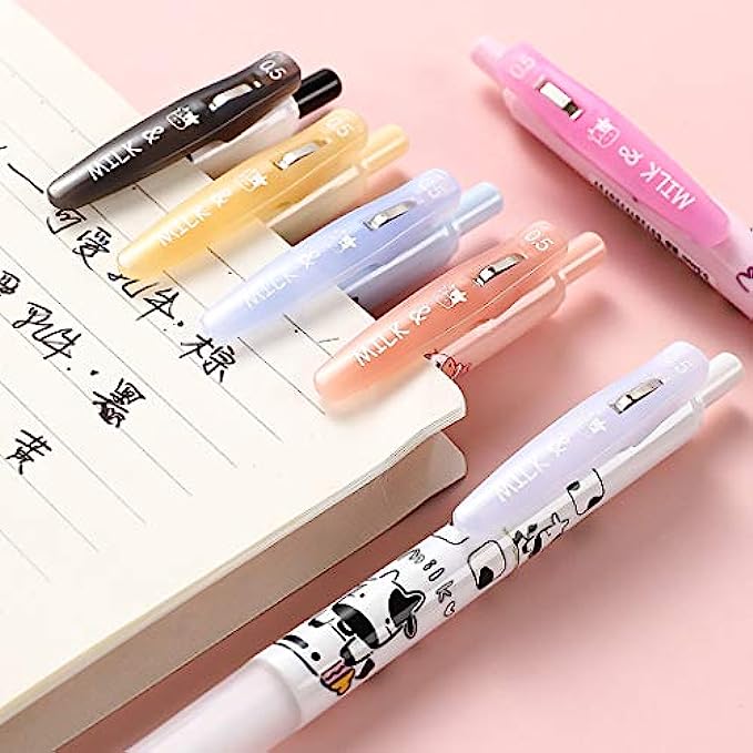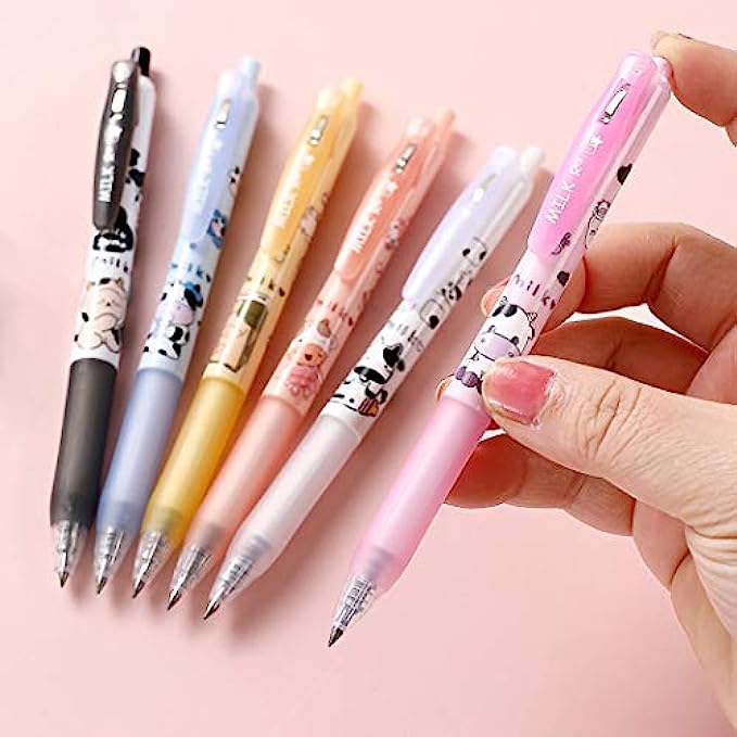 Giant star Cute Milky Cow Pens, Retractable Gel Pens, Black Gel Ink Pens, 0.5mm, Bullet Point, Perfect for Office School Supplies Gifts for Boys Girls,Pack of 6pcs (Milky Cow)