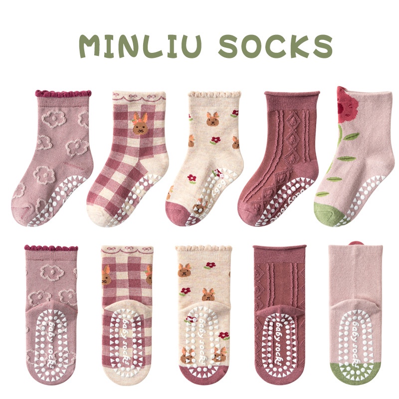 Girls Socks Non Slip Kids Socks Cotton Socks Medium Tube Socks Trampoline Socks Cotton Socks