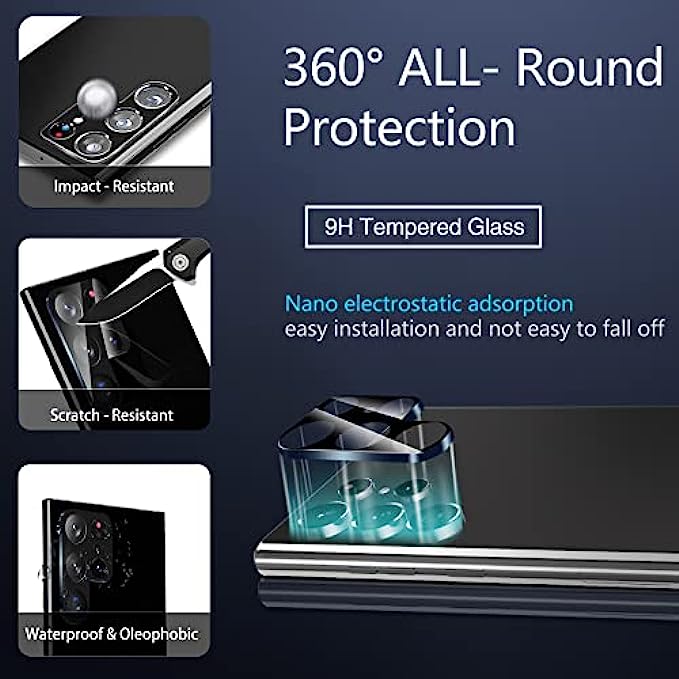 • [Camera Lens Protector] Nano electrostatic automatic adsorption technology, easy installation and not easy to fall off, up to 9H hardness tempered glass, can protects the camera from scratches. Anti-fingerprint coating to keep it clean, light transmittance of 99.99%, compatible with night shooting function, these features allow you keep phone photos original all the time.