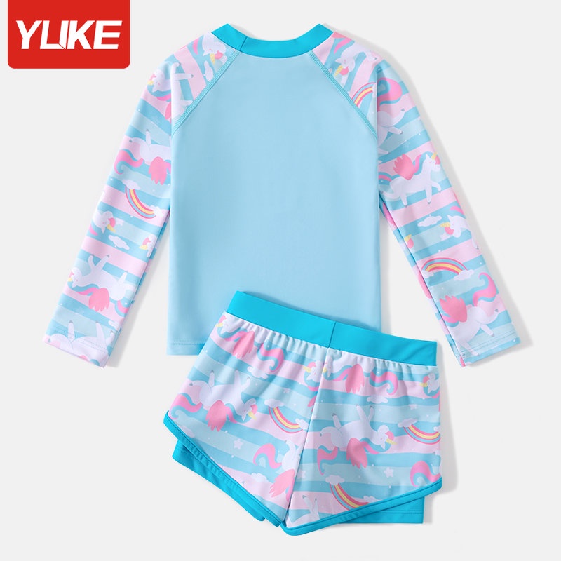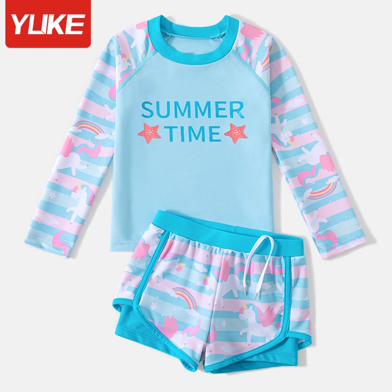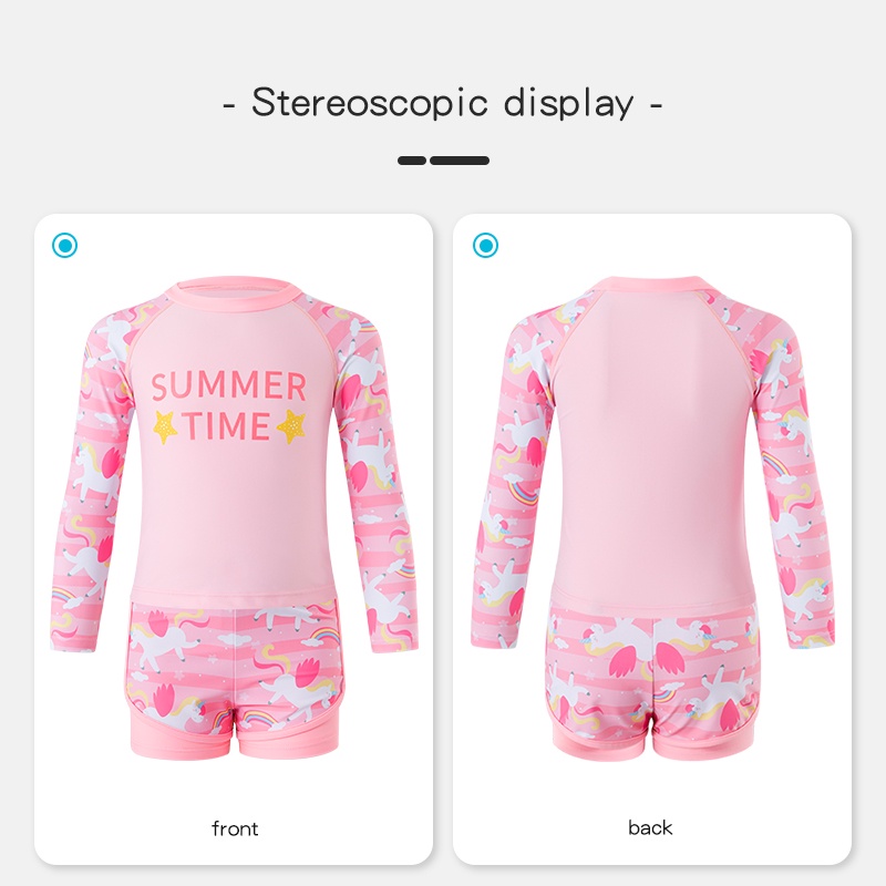 Kids Swimsuit 2023 Cartoon Cute Girls Long Sleeve Sun Protection Two Piece Swimsuit Student Swimmer Conservative Swimwear Children Soft and Comfortable Swimming Suit