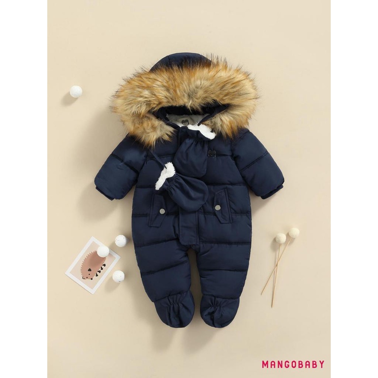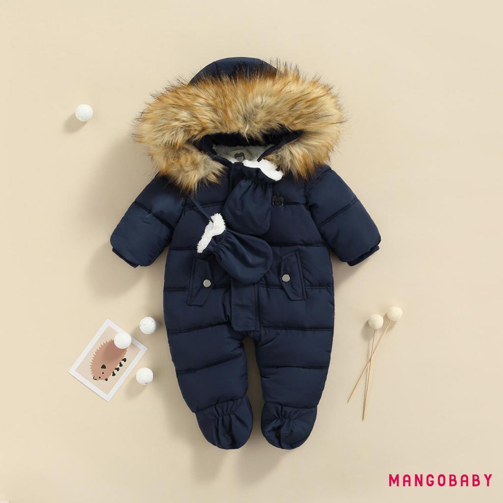 MG-Baby Girls Boys Zipper Down Jumpsuits with Gloves Winter Romper Jumpsuit Romper Outfits