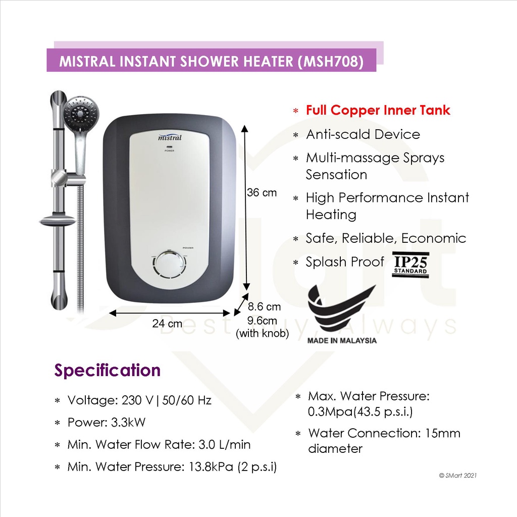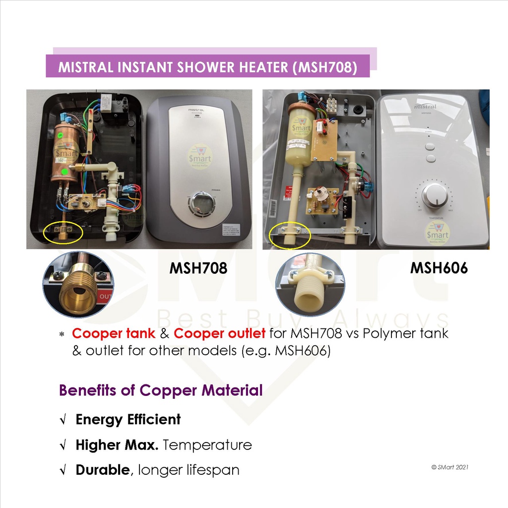 Mistral Copper Inner Tank Instant Shower Heater [MSH708] *Installation Available*