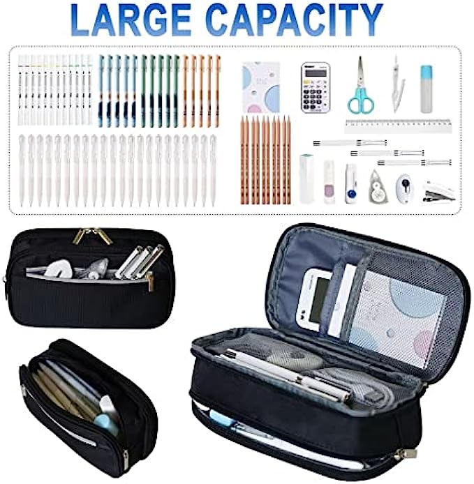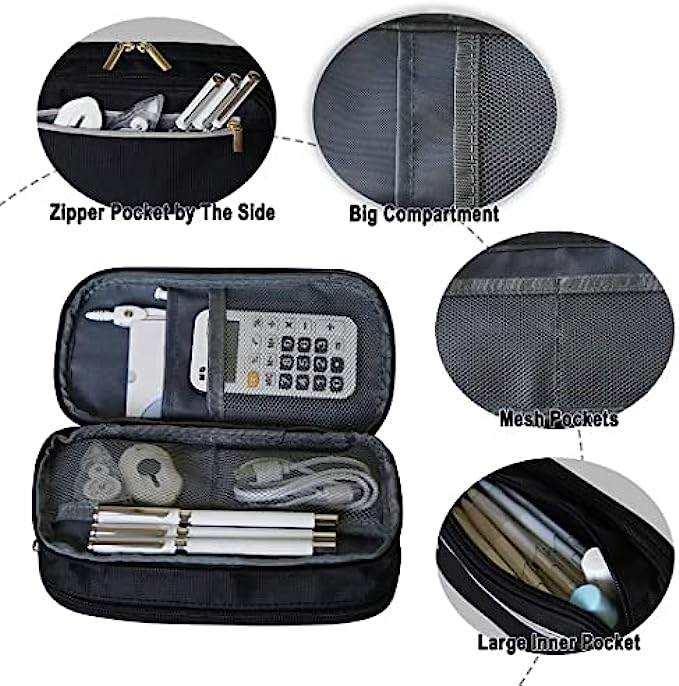 • Unique Design: Large capacity space with 3 layer zipper design pencil pouch, classified storage, easy to organize. One side compartment have 4 roomy separately. The 2 built-in mesh compartments can keep important small notes, cards, and tickets in an easy-to-view built-in mesh compartment. And the other divide compartment can keep your frequently used pens in place and for quick access.