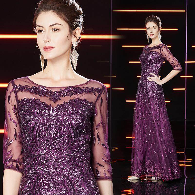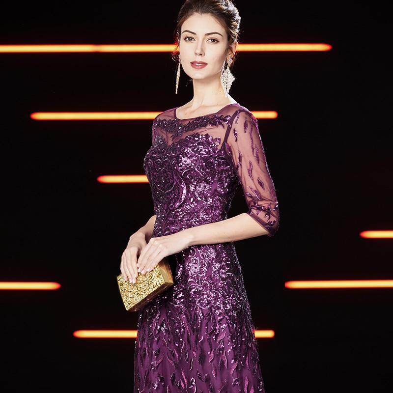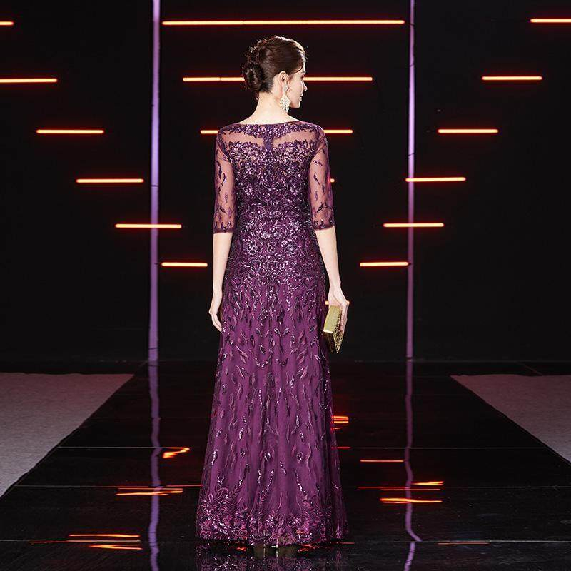 Purple High End Wedding Mother Dresses Noble Korean Sytle Happy Mother-in-law Wedding Dress Sequins Plus Size Women Party Dress