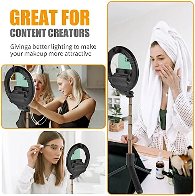 • 【Dimmable Ring Light】 3 colors lights modes: white/ warm white / warm light, 5 inch LED ring LED light 2900-6500K, and 9 adjustable brightness for each mode. Perfect dimmable brightness and modes meet all your needs. It's the ideal ring light for streaming,Tiktok 、photography lighting, smartphone selfie, YouTube video recording and so on.