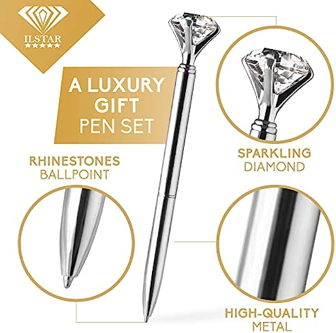 • ? ILSTAR LIFETIME WARRANTY. Every silver pen for women, with decorative glass diamond on top, has been carefully checked and as a sign of appreciation for our customers we offer 100% SATISFACTION GUARANTEED. If you have any issue with the product or something goes wrong with your order, we offer TOTAL REFUND or we can change your set, it’s your choice. We are here to give you the best customer experience! So, click ADD TO CART button NOW and get these unique diamond pen sets!