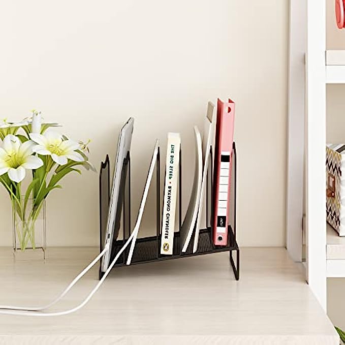Simple Trending Mesh Desktop File Sorter Organizer, 5-Section Bookshelf for Desk Home Office, Black