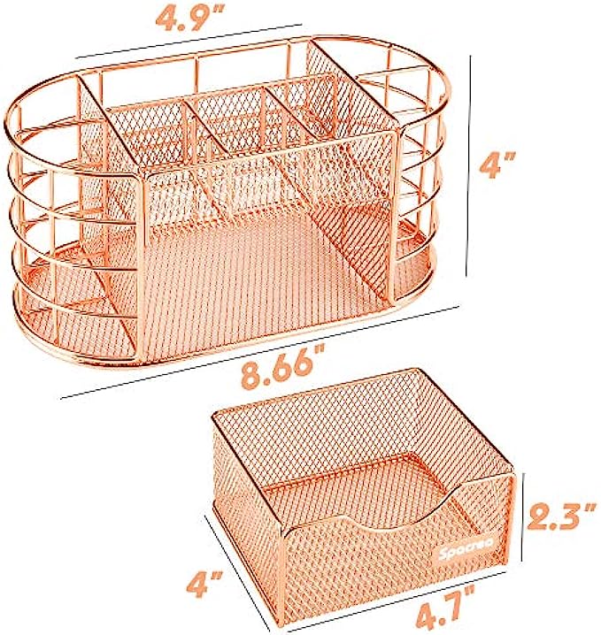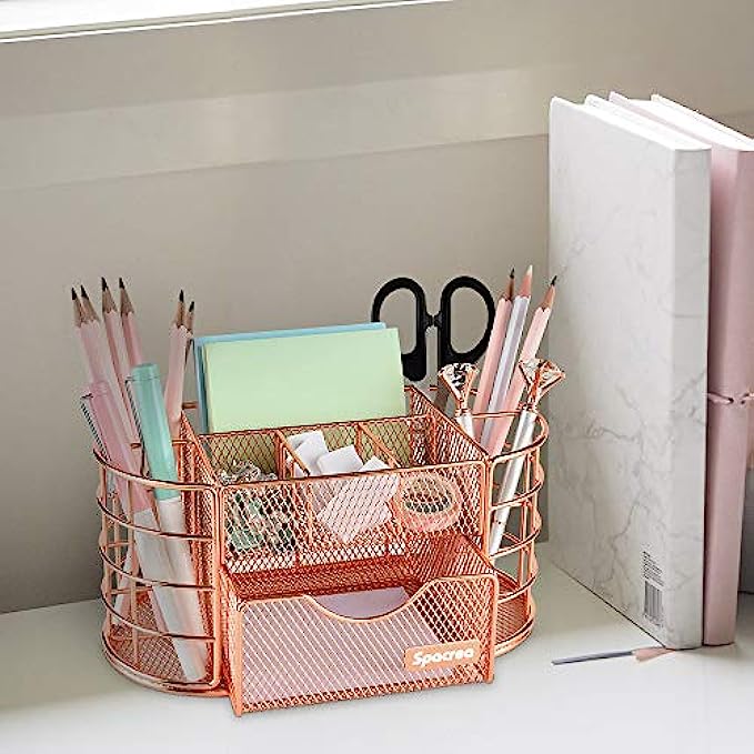 Spacrea Desk Organizers and Accessories, Office Organizer Pencil Holder for Desk, Desk Office Supplies Organizer (Rose Gold)