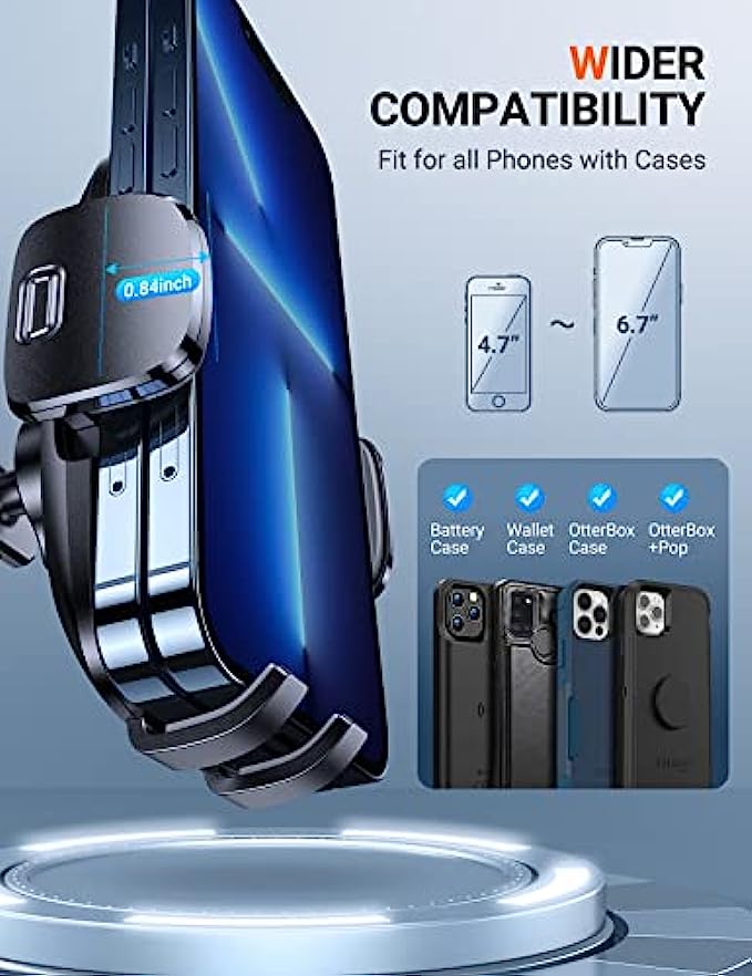 ▶[MILITARY GRADE STURDINESS TEST]: The 2022 enhanced TORRAS cell phone holder for car passed the military-grade sturdiness test! Absolutely sturdier 20 x than normal ones! The suction cup can withstand the temperature from -20℃(-4°F) to 95℃/(203°F), also be reusable! You can stick it on your car dash or windshield. Also, you can get a sticky pad to protect your car dash. Completely friendly, hands-free and views-adjustable! ▶[EASY&REAL HANDS-FREE]: Release easily with one button, clamp fast with one hand! ▶The car phone holder mount is suitable for all kinds of mobile phones with brand thick cases, Battery cases, Ring cases and it is exceptionally sturdy to hold your phone tightly. Like iPhone SE /11/ 11 Pro/11 Pro max /x/ xs max/xr/8 plus/8/7/6s plus, Samsung galaxy s21 /s20/s20+/s20 ultra 5G/note 20/10 plus/10/9 plus/9/s10/s9/a10e, Google Pixel 3a/4 XL, LG v20, One Plus and more. ▶[4 IN 1 ULTIMATE CAR MOUNT]: Are you not sure which installation method is better for your car? No worries! The 4 in1 phone mount for car can be flexible placement! Dashboard & Windshield & Air Vent & Home, all places work perfectly! Also, with low temperatures in winter and heat in summer, you can choose to avoid the issue caused by environmental influences. ▶[2022 ENHANCED VENT CLIP]: You can screw the nut to fix the clamp freely, the tighter you screw, the sturdier it will be! Its two small arms are just enough to press against the upper and lower vent blades to form a stable triangular structure and lighten the load on the middle one, with no damage to your car. This clip more than 10X sturdier than normal ones. It fits perfectly for your car no matter what the thicker blades vents or vertical ones. ▶[WHAT YOU GET]: TORRAS ensures you with an 36-month pleasant experience and top customer service. Please feel free to let us know if have any questions about this car phone mount. With the car holder for cell phone, you can get a package including 1 enhanced suction cup, 1 sticky pad, 1 strong air vent clip, and 1 user manual. Note: The sticky pad just can be used once, please think twice to stick it.