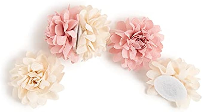 • Express yourself and bring added functionality to your workspace with these endearing magnets featuring delicate fabric petals in hues of blush and a warm off-white