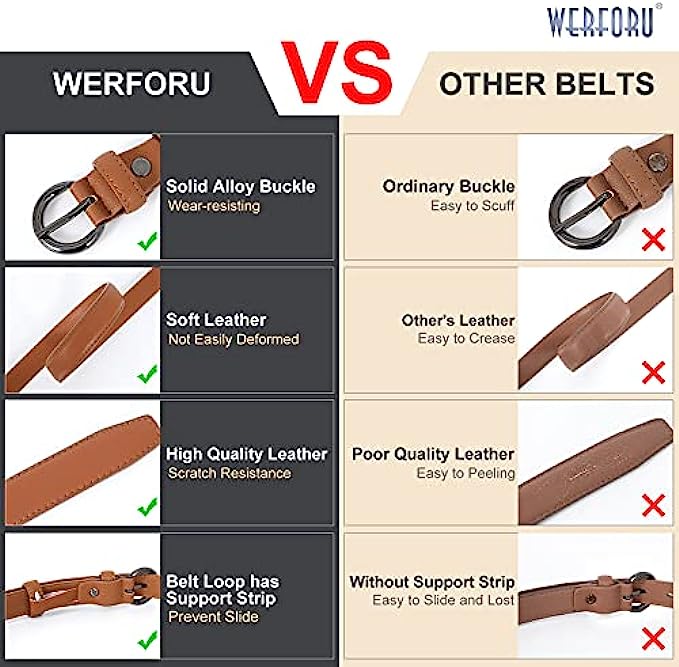 MATERIAL- High quality leather belt + high quality alloy pin buckle, simple stylish design without any superfluous decoration.