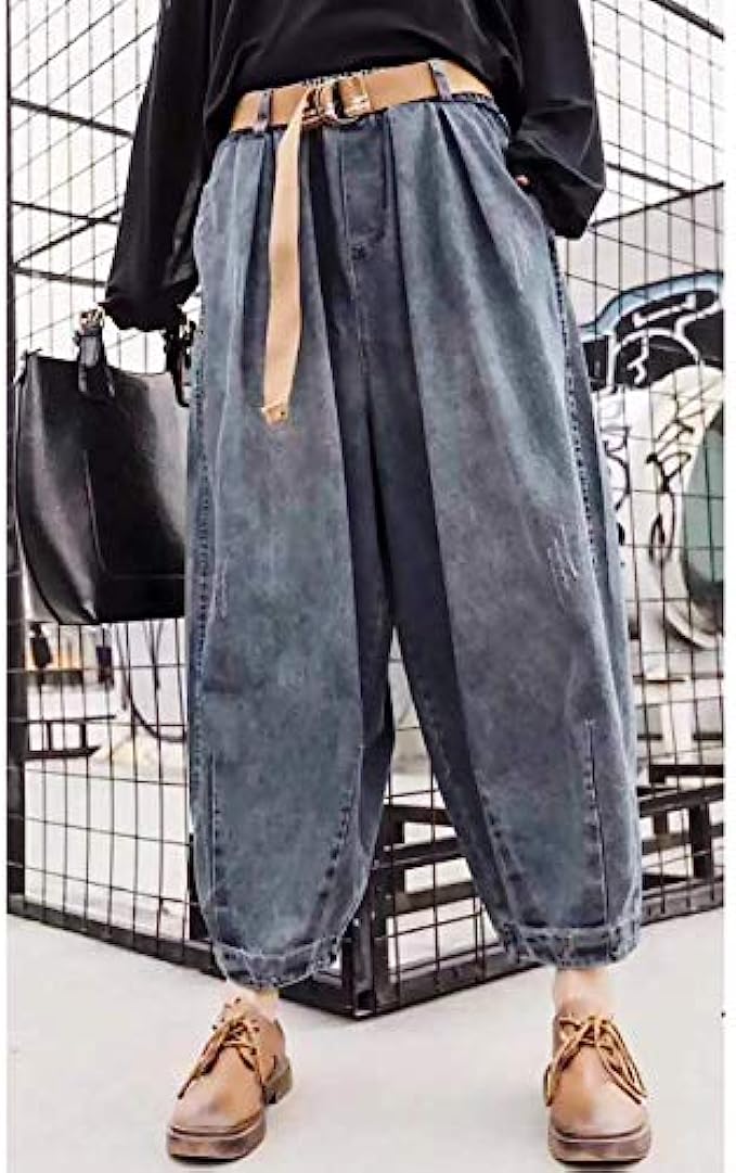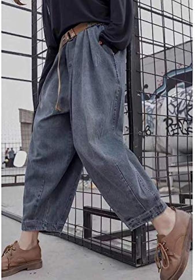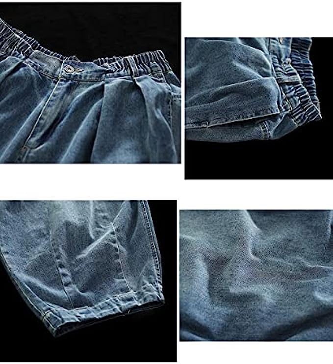 YESNO Women Casual Loose Cropped Pants Denim Bloomers Elastic Waist with Pockets PJD