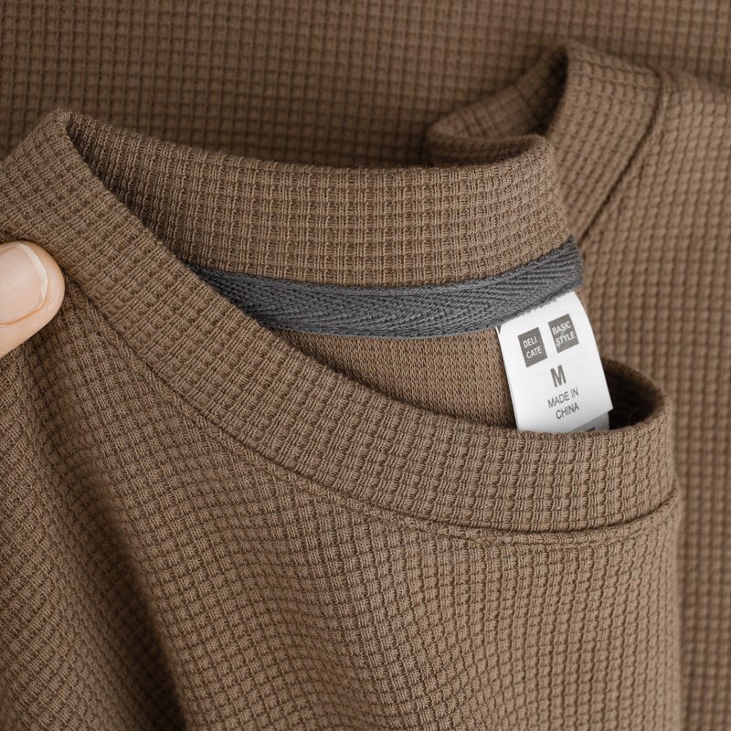 Material Quality:comfortable Colour:more to biege color The size I choose is L for a height of 1.7m weight 61kg. The size is just right for me. Not too loose nor tight. Very good. Though outside we see is a waffle Tees, but reverse side is silky and smooth one. I think is good to wear to the country around 26-28degree.