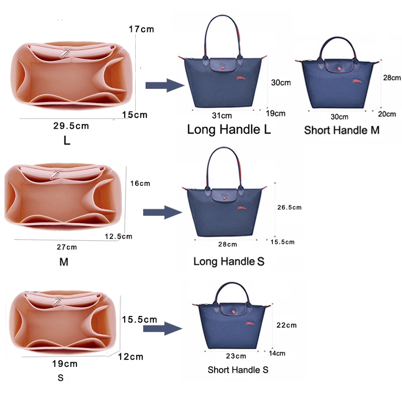 EverToner Women Felt Insert Bag For Longchamp Le Pliage Bags Makeup Organizer Travel Handbag Inner Purse