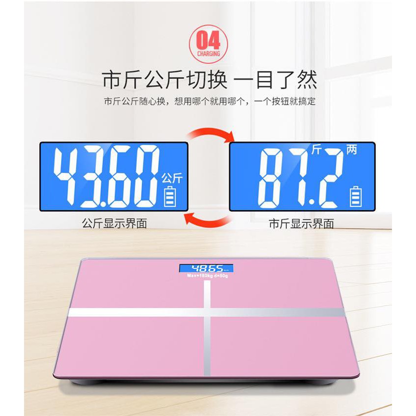 German Style USB Digital Body Weighing Scale Weight Scale LCD Display Bathroom Tempered Glass Weigh Electronic