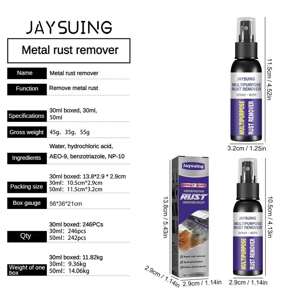 Jaysuing 30/50ML Rust Remover Spray Multi-Purpose Cleaner Metal Surface Chrome Paint Rust Remover Car Maintenance Cleaning Tools