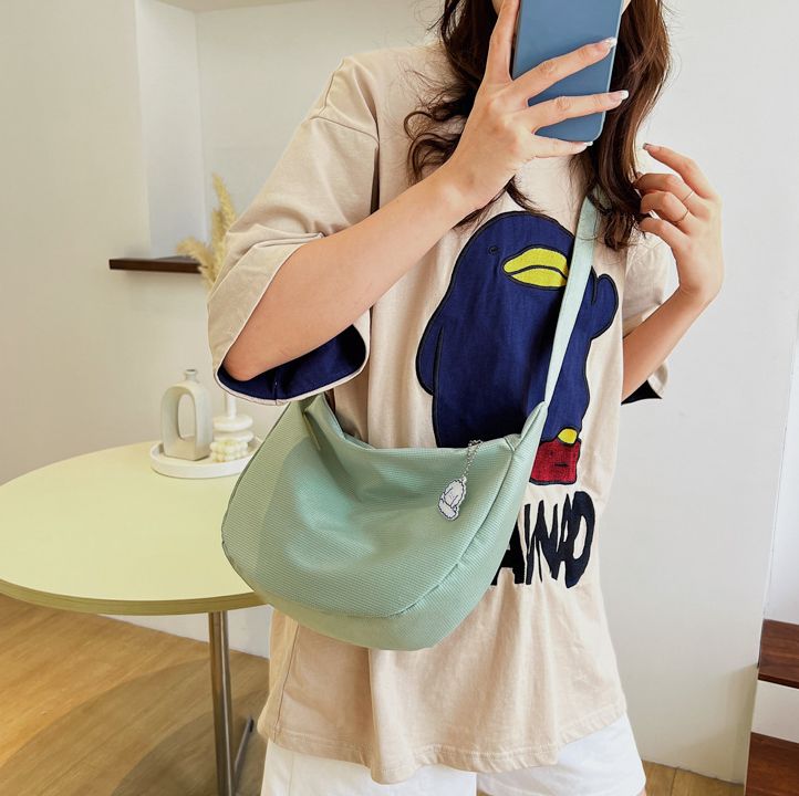 Large-capacity Canvas Shoulder Bag Women 2023 Spring Summer New Style Solid Color Simple Fashion Casual Bag Messenger Bag Trendy