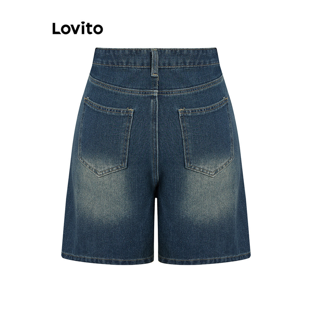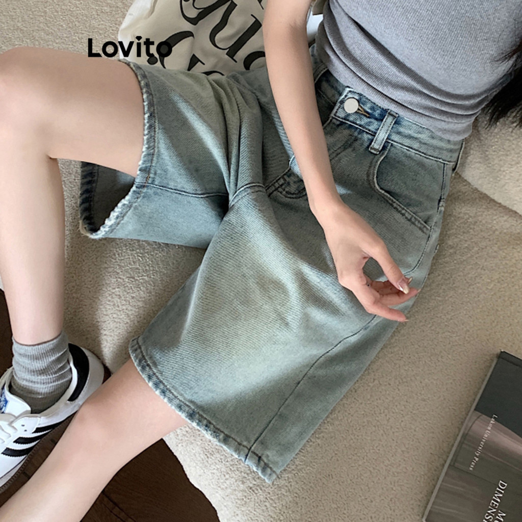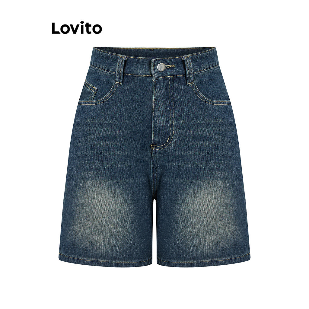 Lovito Casual Plain Pocket Denim Shorts for Women LNA19020 (Multi-color)