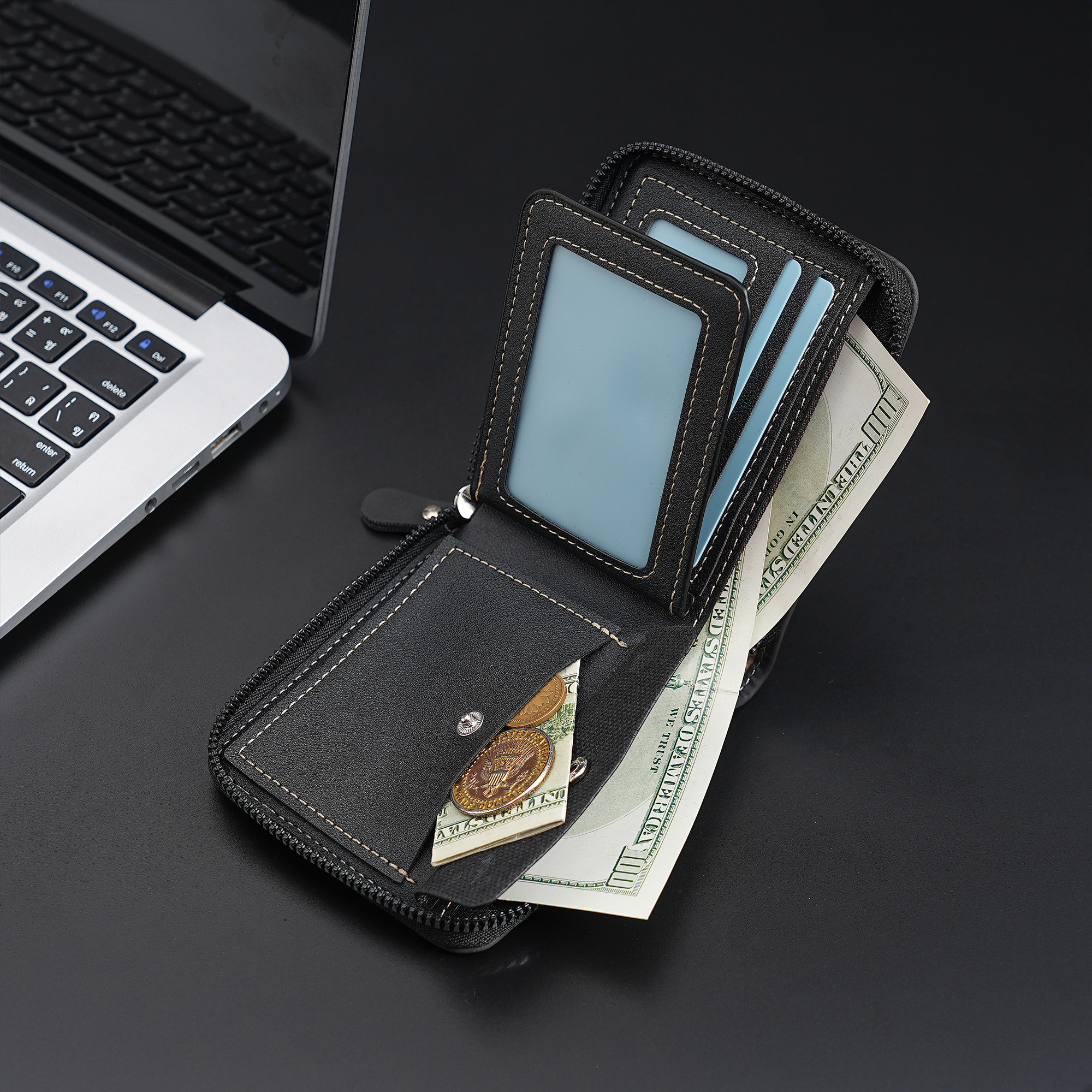 Color: blue Multi-compartment wallet can hold many things and has a coin pocket or small things or drops, the zipper is quite smooth and easy to pull.