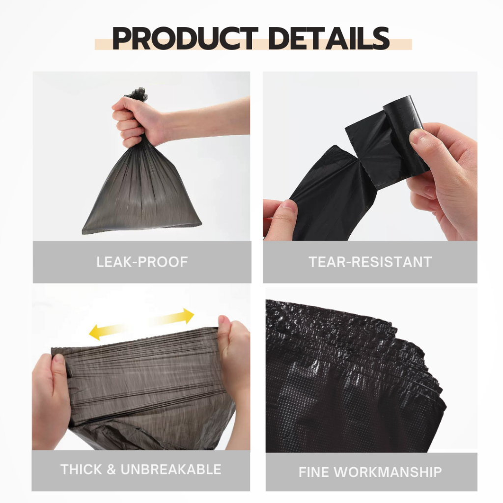 Quality:great repeat purchase. small bags are refills for the portable container. good for outings and overseas use. large rubbish bags are good quality and fits kitchen bin
