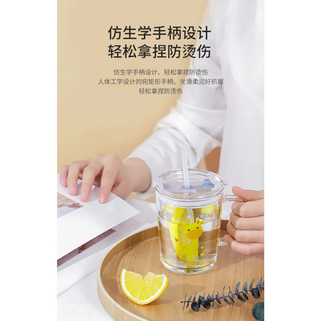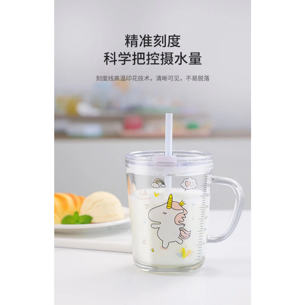 Mug? 400ml Children's Breakfast Glass Mug With Straw Scale Cartoon Animal Unicorn Milk cup with Handle Glass Bottle
