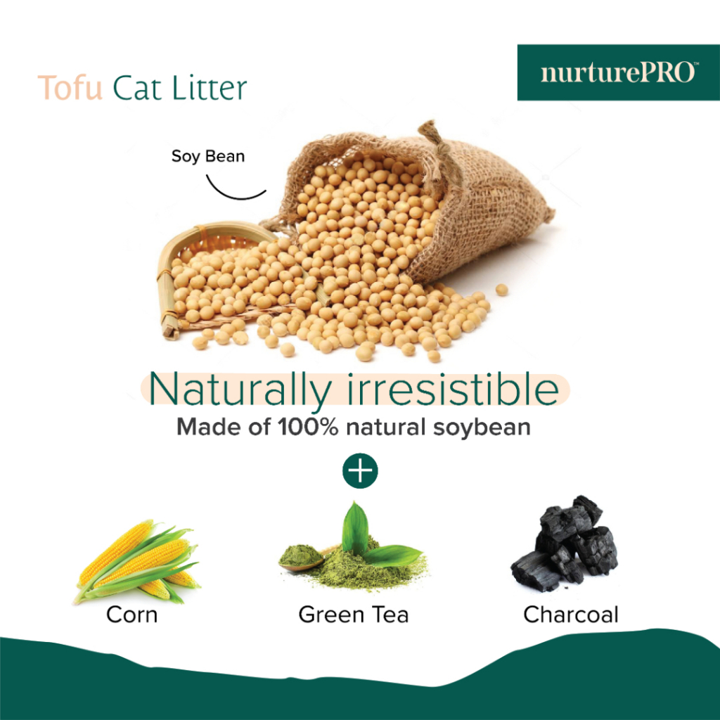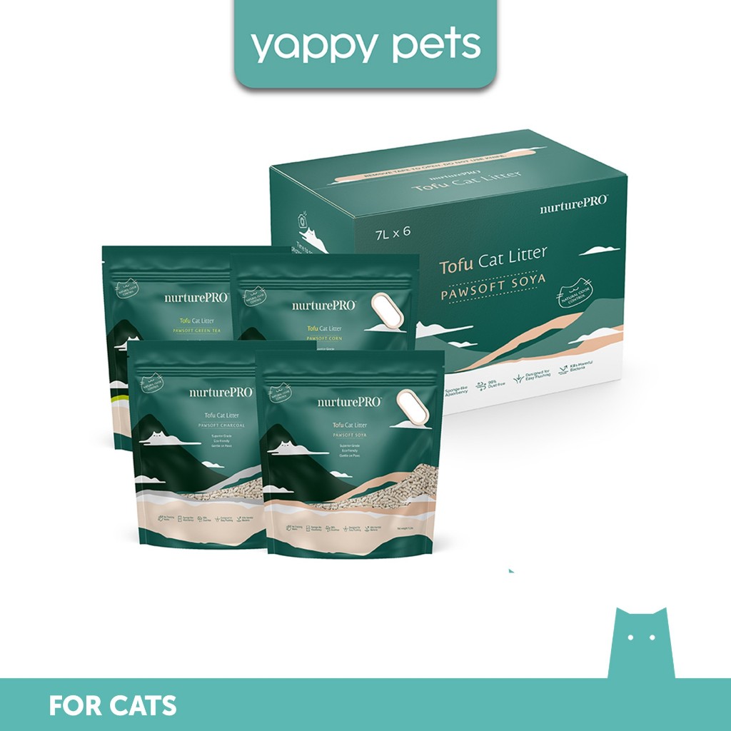 NurturePRO Pawsoft Tofu Cat Litter (7L x 6) | Carton Deal, Tofu Litter Soya Corn Green Tea Charcoal