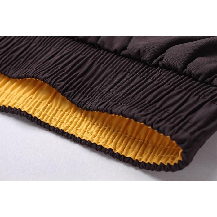Material Quality:Swim/board shorts material Colour:Yellow logo on black looks nice Fast shipping from Shenzhen China (within a week). M size is a good fit for me (174cm, 65kg).