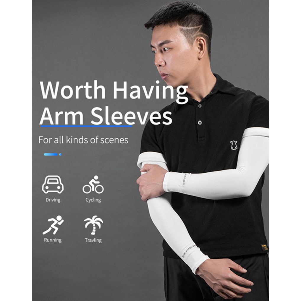 【Ready Stock】RockBros Outdoor Sport Cooling Arm Sleeves Cover Cycling UV Sun Protection 1pair