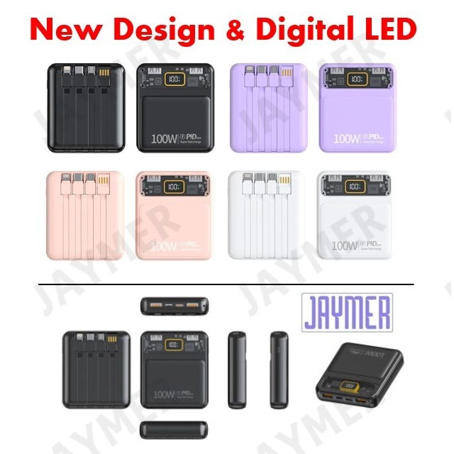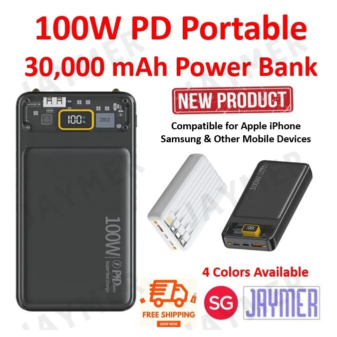 [SG STOCK] Power bank Fast Charging Powerbank Cable Portable 4 in 1 20000 30000 mAh For Apple iPhone 14 Samsung S24