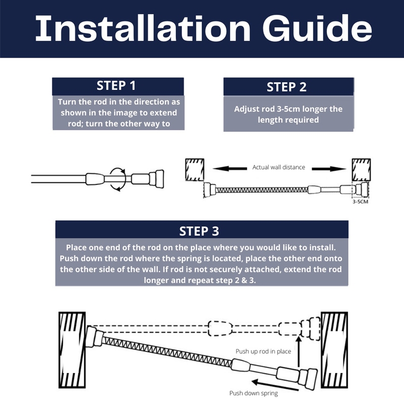 【SG Stock】 Stainless Steel Round Adjustable Extendable Curtain Rod Telescopic Tension Shower Rod Laundry Pole No Drill