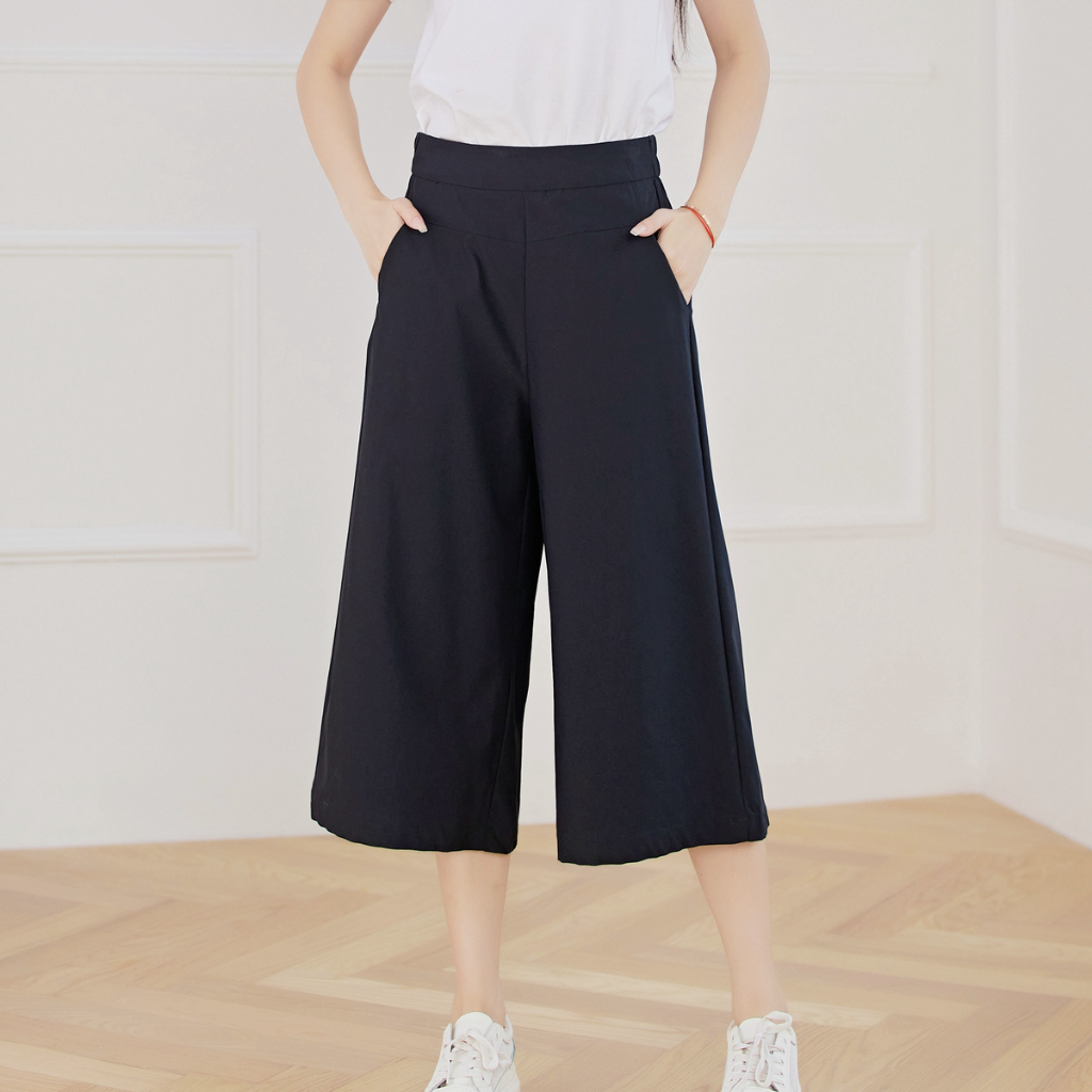 Silverworld 10123 Ladies wide leg pants High waist women casual pants culottes 3/4 length