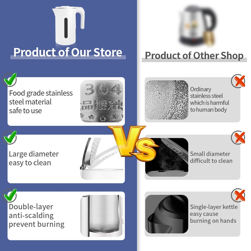 Simplus 1.8L Electric Kettle 1500w 304 Stainless Steel Auto Power Off Boil-Dry Protection Dual Insulated Body DRSH002