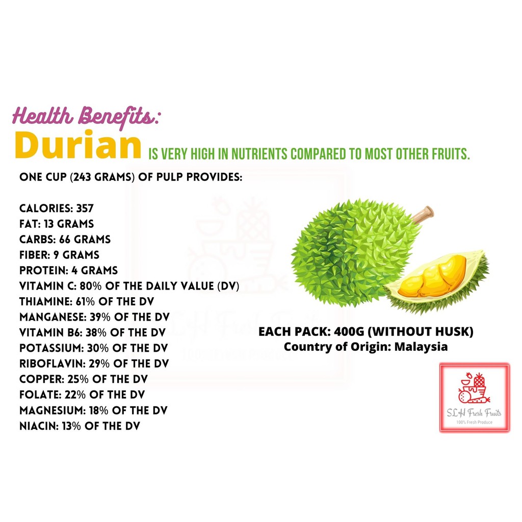 Quality:nice Taste:good Suitability:good Received next day around 6pm plus. Durian meat very fresh and seed consider small and flat as image attached. Package seal very nice, I have received message next day inform the item will delivery by LaLaMove delivery service.