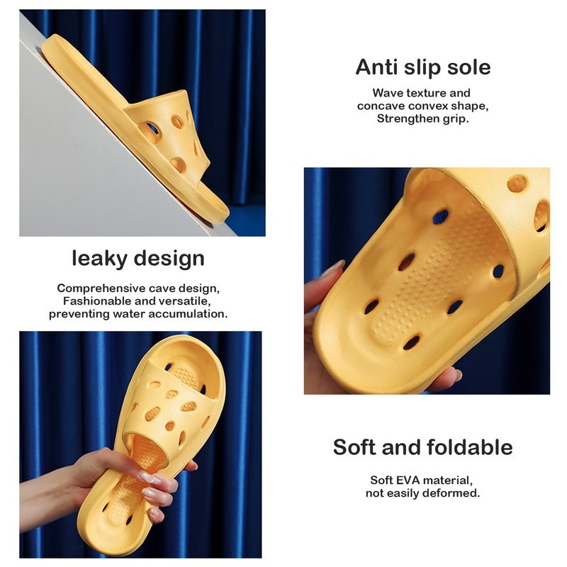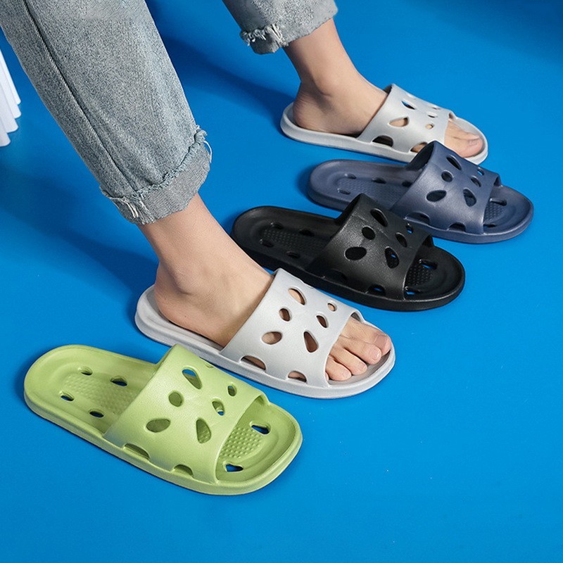 Ultra Light Eva Hole Slippers For Bathroom Toilets Molded Monolithic Dry Breathable Waterproof Solid Color Casual Home Bathroom Slippers Women'S Breathable Hollow Slippers